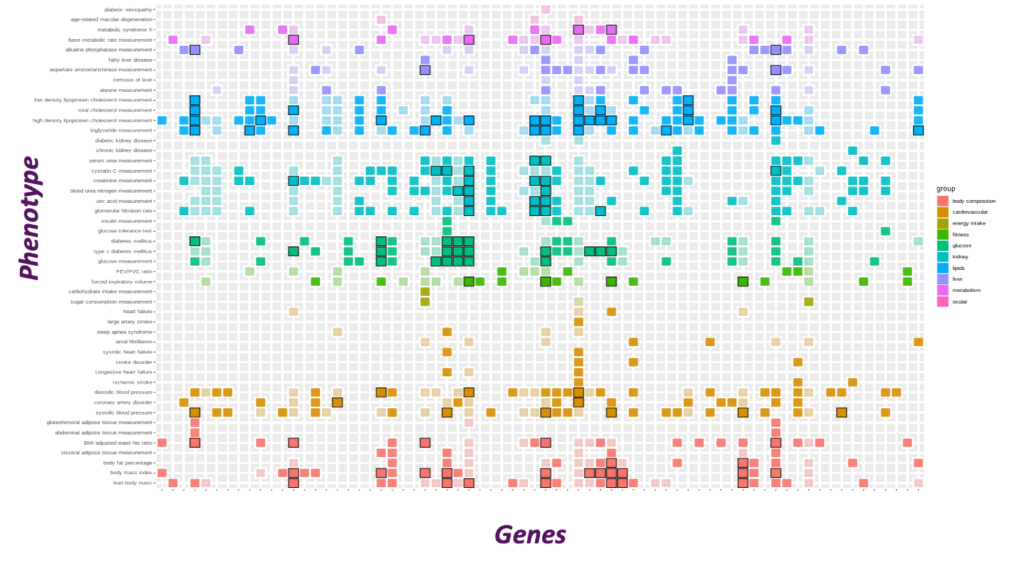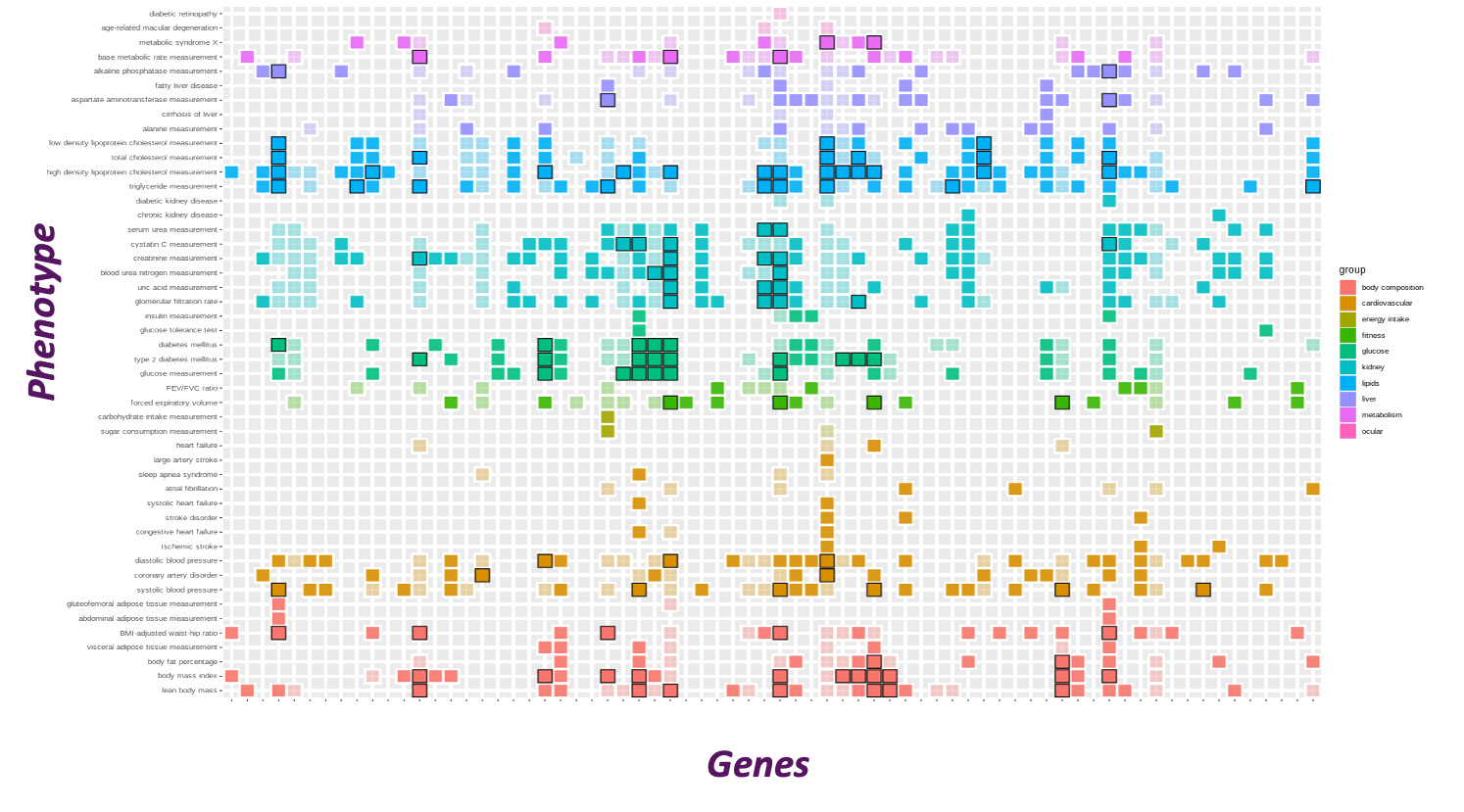 Genes with human genetic support were identified through mapping genome-wide association study loci across a comprehensive panel of metabolic traits. Approaches used to map variants to genes include spatial proximity, colocalization with expression quantitative trait loci, identification of protein coding variants, and cross referencing with gene burden tests.